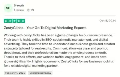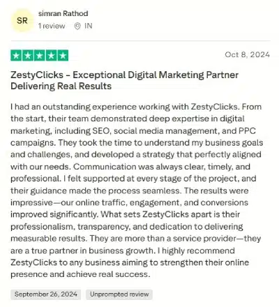 At ZestyClicks, we take pride in delivering measurable results for every client. Our success is reflected in the positive feedback and high ratings from businesses we’ve helped grow.